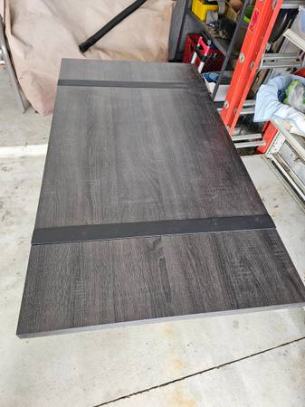 Desk/Table is 5' wide, 32" deep and 30" high. Black metal legs. Email me your contact info