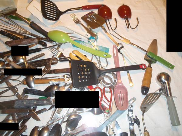 Lot Of Kitchen & Cooking Utensils w Some Flatware. $10 firm for all. Email to view. Pick Up Only.
