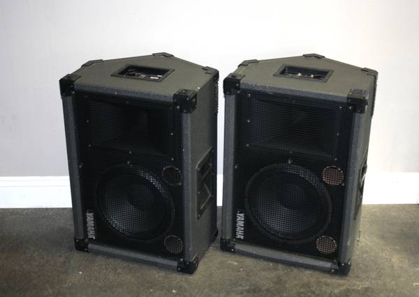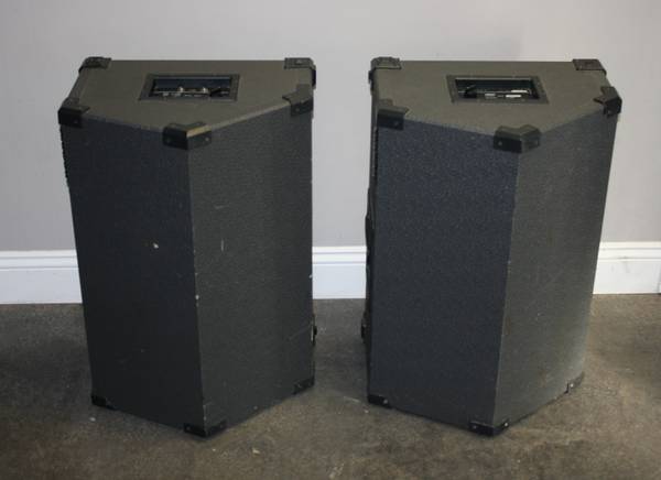 The Yamaha SM12H II Monitor Speaker a member of Yamaha's Concert Club Series in the 1970s. These units were utilized by a local audio engineer for multiple live uses. Recently these were serviced and tested by DALAUDIO with a professional amplifier and are good working condition. The LF woofers were just replaced with brand new high power Dayton professional drivers with nearly identical output specs, voice coil size and power ratings. The crossover tweeter control was cleaned and crossover capacitors, resistors and coils checked. The speaker can be used for wedge floor monitor, mounted vertically upright in a club, or it can be mounted vertically upright on a tripods as sound reinforcement. and we are including two Ultimate Tripods. (If you don't need the tripods the speakers are $300) . If you need mixers, amplifiers, equalizers, cables, road case or a complete set up, we will be happy to put that together for you. Ideal for DJ, Clubs, Large Shop/Garage or outdoor parties.