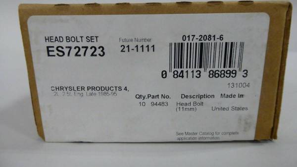 HAVE AVAILABLE A FEL-PRO #ES72723 ENGINE CYLINDER HEAD BOLT SET. FITS ALL CHRYSLER PRODUCT 2.2L & 2.5L ENGINES FROM 1985-1995. CONTACT WALT AT .THANKS FOR LOOKING.